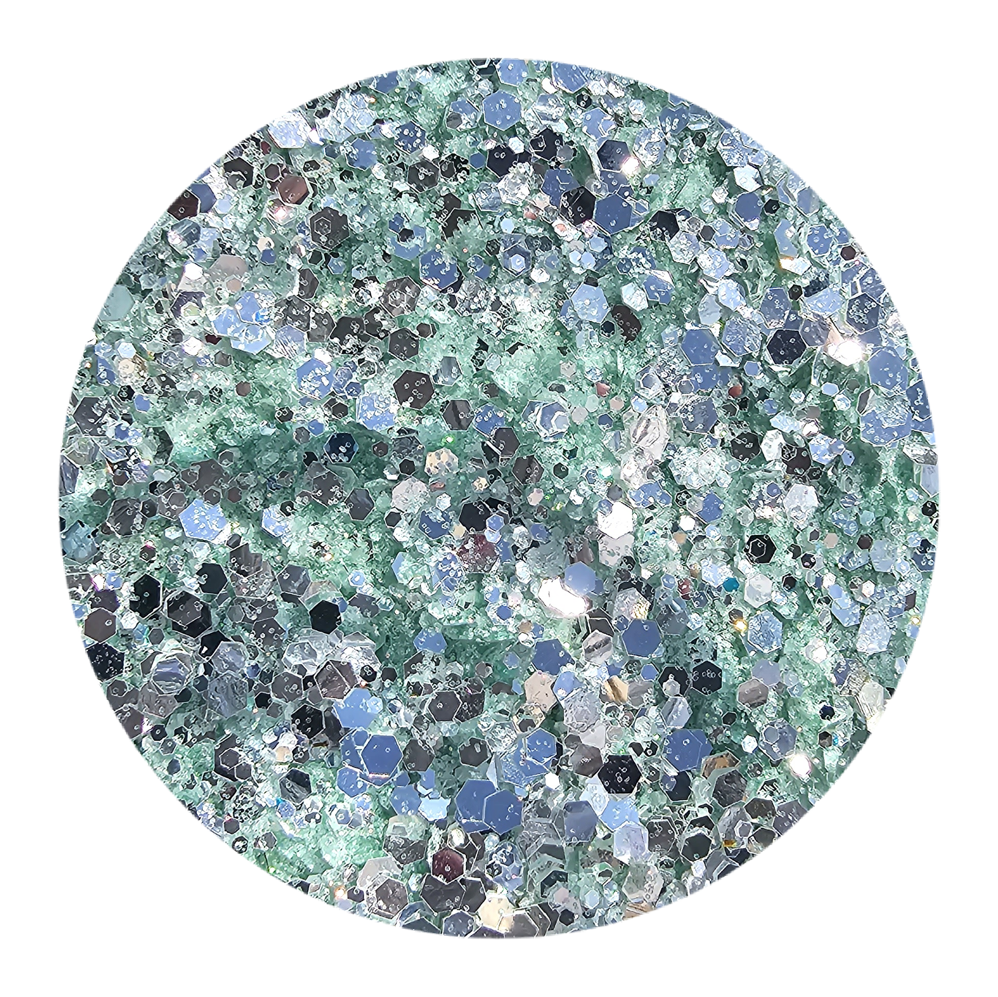 Light Green and Silver chunky mix that has a mirror finish
